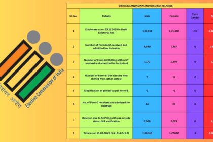 South Andaman Accounts for 62.39% of Total Electors in A&N Islands Post SIR; North & Middle Andaman 28.86%, Nicobar 8.75%