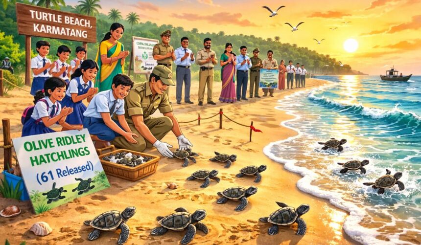 61 Olive Ridley Hatchlings Safely Released into Sea at Karmatang’s Turtle Beach