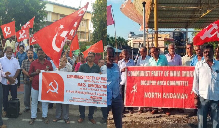 The Communist Party of India (Marxist) [CPI(M)] organized a mass demonstration in front of the Municipal Council at Aberdeen Bazar, Sri Vijaya Puram, on Wednesday evening, raising concerns over the recent hike in LPG cylinder prices, recurring power cuts, and curtailment of water supply.