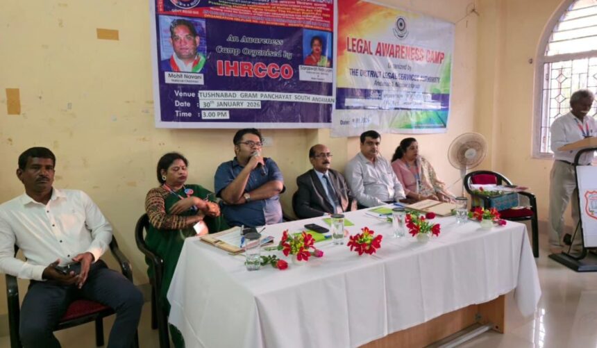 The District Legal Services Authority (DLSA), Andaman & Nicobar Islands, organised a Legal Awareness Programme at Tushnabad Gram Panchayat on January 30, 2026, in collaboration with the Indian Human Rights & Crime Control Organisation (IHRCCO).