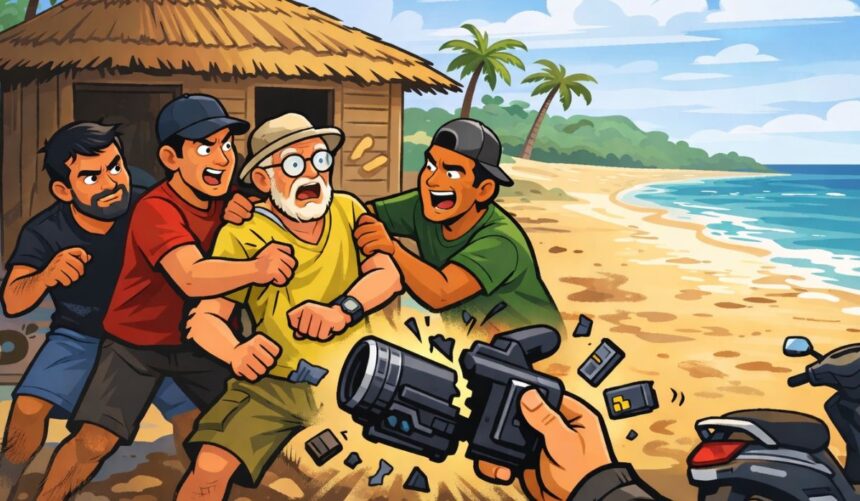 The complainant said he eventually managed to escape from the hut and ran towards the centre of the beach, where he noticed police personnel standing nearby and immediately informed them about the incident. Police personnel reportedly accompanied him back to the spot, but by then the three men had fled the area along with the broken handicam, and neither the accused nor the camera could be located.