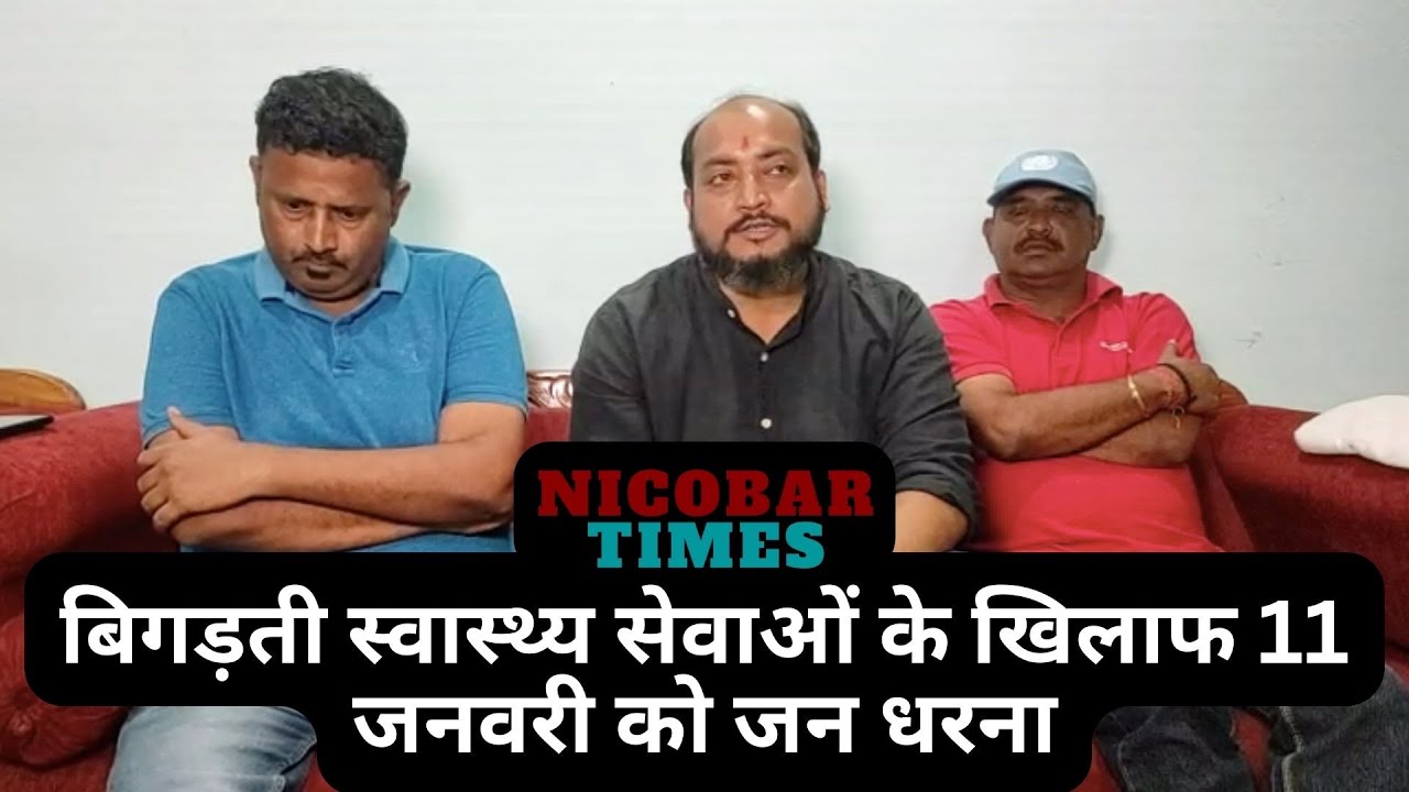 Home » Mass Dharna Against Deteriorating Health Services on 11th Jan | बिगड़ती स्वास्थ्य सेवाओं के खिलाफ 11 जनवरी को जन धरनाLocal NewsNicobarNorth and Middle AndamanPoliticsSouth Andaman Mass Dharna Against Deteriorating Health Services on 11th Jan | बिगड़ती स्वास्थ्य सेवाओं के खिलाफ 11 जनवरी को जन धरना Last updated: January 10, 2023 1:39 pm Tarun Karthick Share 0 Min Read SHARE Share This Article Facebook Whatsapp Whatsapp Previous Article Training of Trainers to Ensure Tobacco Free Educational Institutions Next Article Unique Awareness Drive by Police at Car Nicobar Latest News PHED-APWD Organizes Water Concert at Bathubasti to Promote Water Conservation Local News South Andaman March 6, 2026 Hotels, Guest Houses and Homestays in Andaman and Nicobar Islands Advised to Keep Emergency First Aid Kits for Tourists Andaman and Nicobar (Islands) Local News March 6, 2026 Public Grievance Redressal Programme Held in Diglipur Under ‘Sampark se Samadhan – Prashasan Gaon ki Ore’ Initiative Local News North and Middle Andaman March 6, 2026 Labour Department Organises Safety Awareness Programme at ITI Dollygunj to Mark 55th National Safety Week Andaman and Nicobar (Islands) Local News March 6, 2026