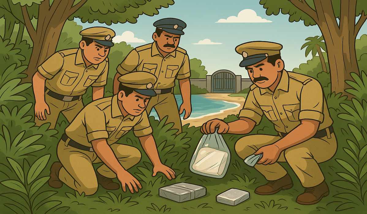 In a startling discovery, police at Hut Bay recovered over 1.1 kilograms of suspected cocaine/methaqualone that had been deliberately concealed in the jungle near Chuttan Beach, opposite the Naval Gate, Little Andaman on August 30th, 2025.