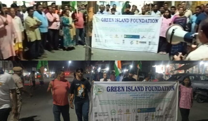 A peaceful public assembly and rally was held at Billiground Bazaar on Friday evening in support of students in the Andaman & Nicobar Islands. The programme was organised by the NGO Green Island Foundation at around 5.30 pm.