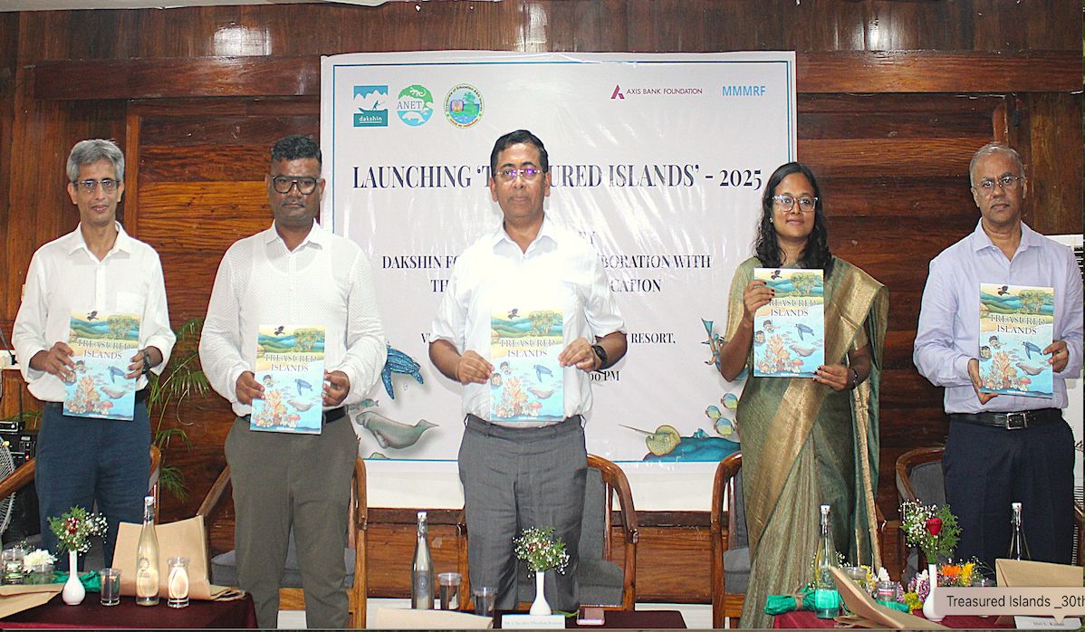 On the occasion of World Literacy Day 2025, the Dakshin Foundation, in collaboration with the Directorate of Education, launched the revised edition of Treasured Islands, an environmental education book for middle school students of the Andaman and Nicobar Islands. The launch took place at Megapode Resort in the presence of senior officials, educators, and students.