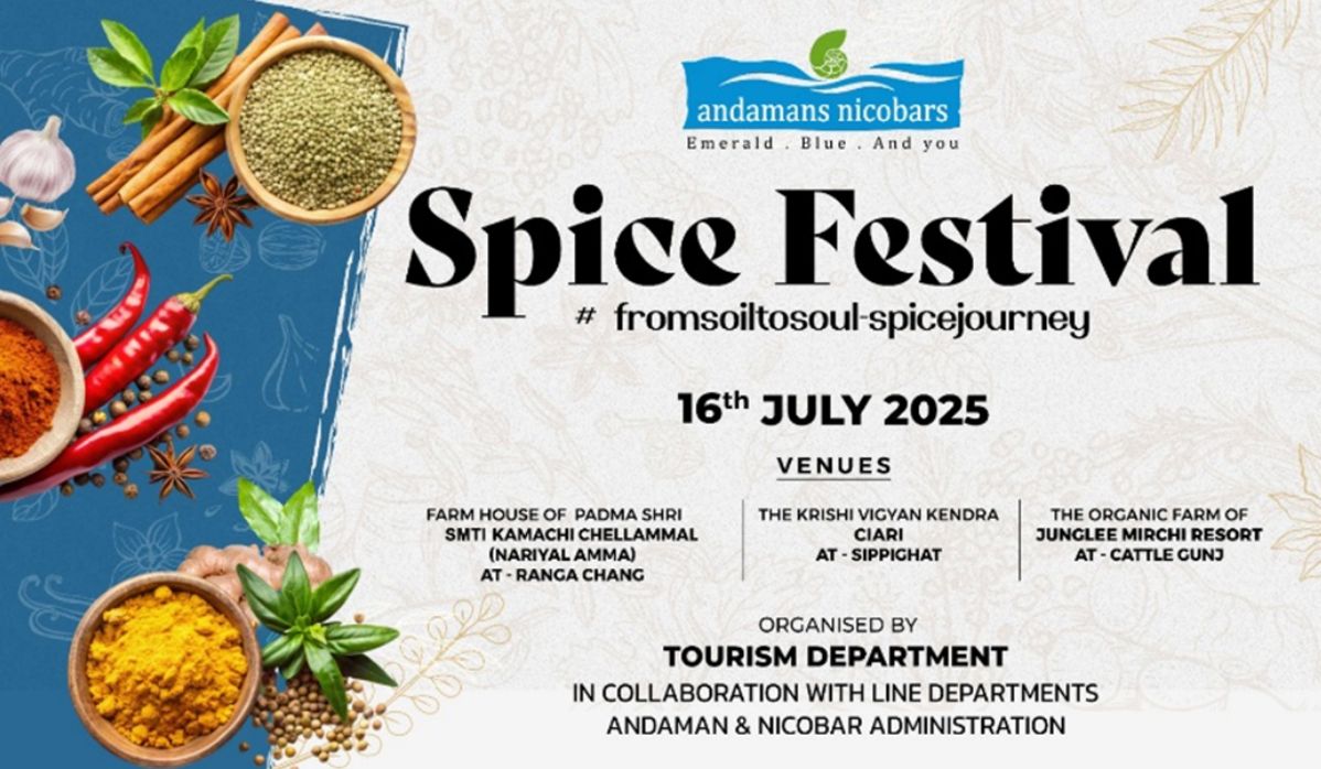 The Department of Tourism, Andaman and Nicobar Administration, is set to host the Spice Festival – 2025 on July 16 as part of its ongoing series of fairs, festivals, and events aimed at promoting sustainable tourism across the Islands. The festival seeks to highlight the culinary, medicinal, and cultural value of locally grown spices, while offering visitors an immersive agro-tourism experience.
