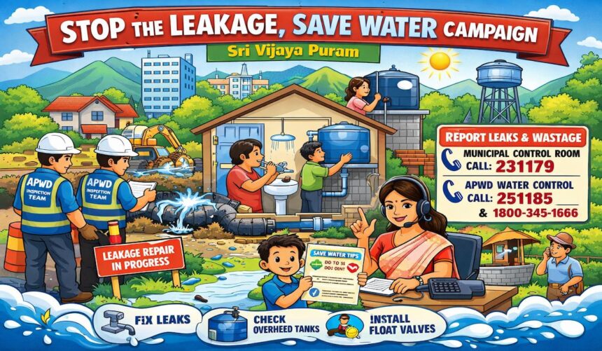 In a bid to curb water wastage and promote sustainable water management, the Sri Vijaya Puram Municipal Council (SVPMC) has launched a city-wide campaign titled “Stop the Leakage, Save Water.”