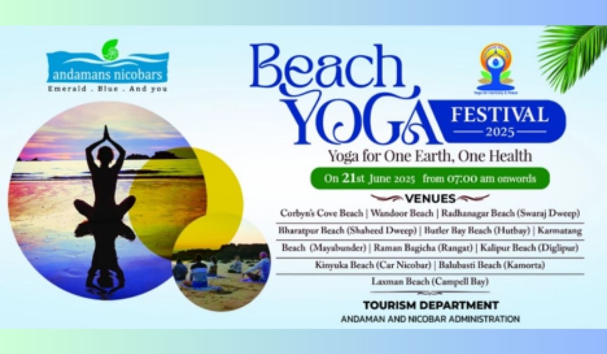 The Department of Tourism, Andaman and Nicobar Administration, is all set to organize a ‘Beach Yoga Festival’ on 21st June 2025 to mark International Yoga Day. With the theme “Yoga for One Earth, One Health,” the event aims to promote wellness, harmony, and sustainable living. The festival will take place simultaneously at major beaches across the Islands in collaboration with the respective Deputy Commissioners of South Andaman, North & Middle Andaman, and Nicobar Districts, along with support from all line departments.