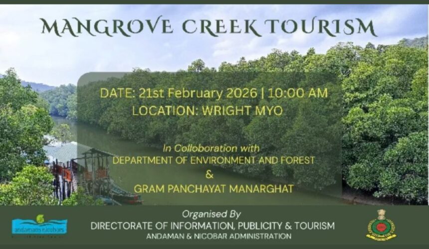The Department of Tourism, A&N Administration, in collaboration with the Department of Environment & Forests, will organise a Mangrove Creek Tourism programme at Wright Myo on February 21, 2026, from 10 AM to 12 PM. The initiative will be held under the tagline #Rootsoflife.